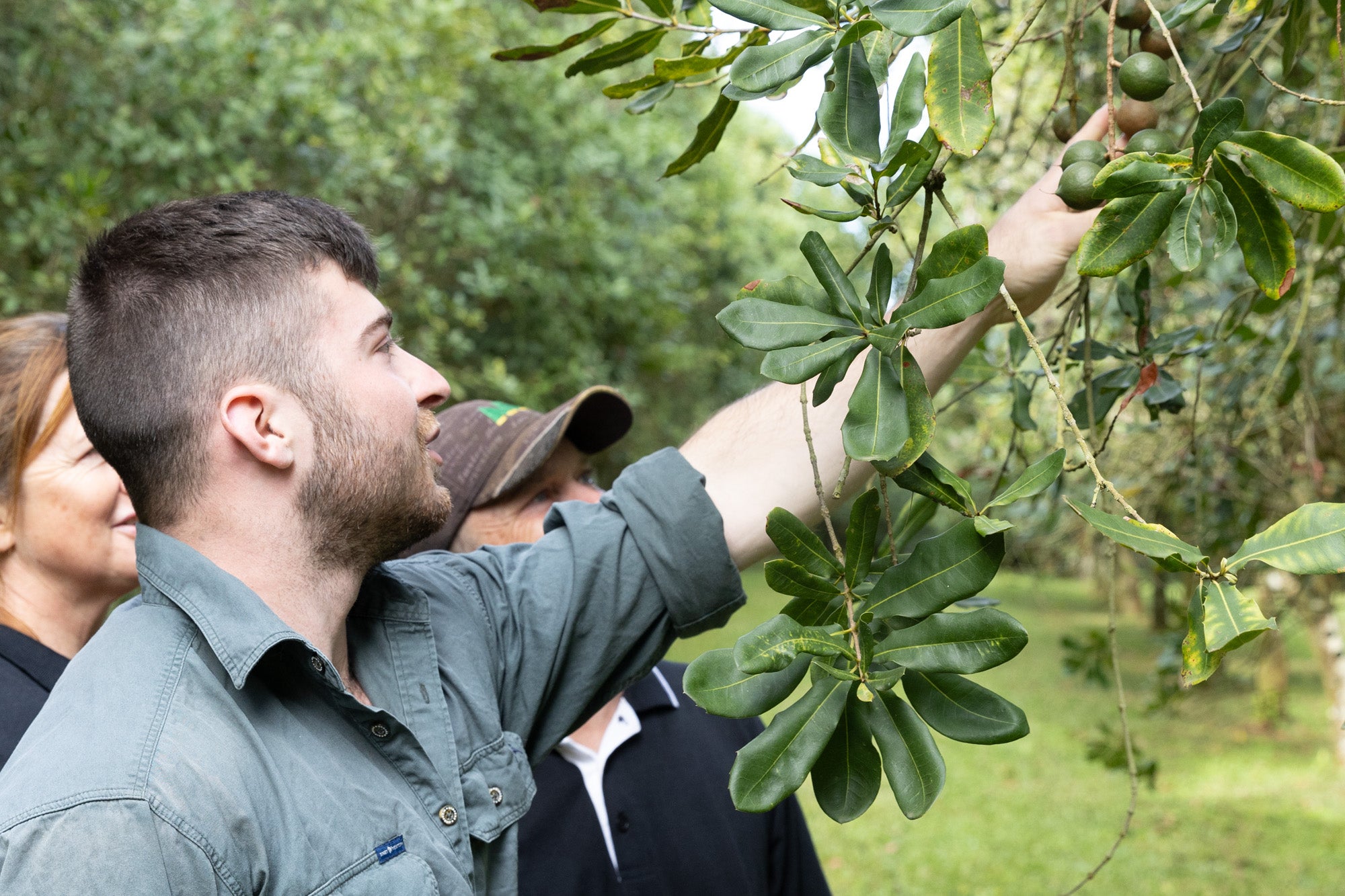 위: 마카다미아 역사학자이자 업계 전문가인 이안 맥코나치(Ian McConachie) OAM이 퀸즐랜드 동부 해안의 아마무르 주립 산림에서 야생 마카다미아 나무를 발견하고 있다.